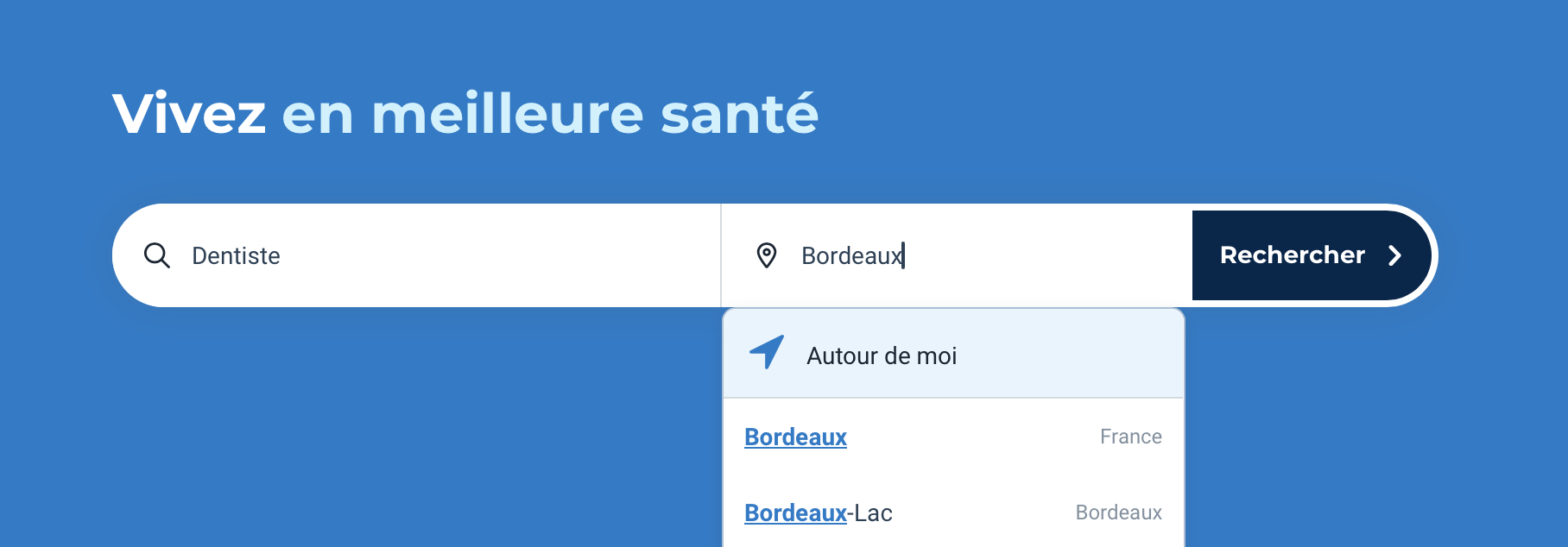 In the search bar, type the type of doctor you’re looking for (in French, for better results) and your location.
